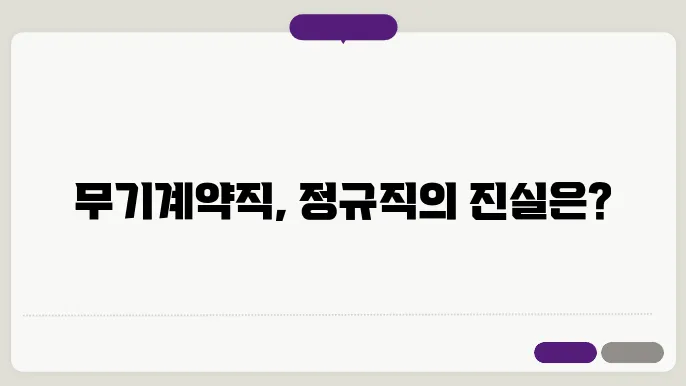 | 고용 형태 | 무기계약직은 정규직과 달리 특정한 고용 기간이 정해지지 않음 | 무기계약직: 반복 갱신, 정규직: 정규 | 정규직은 법적으로 보호받는 범위가 더 넓음 |